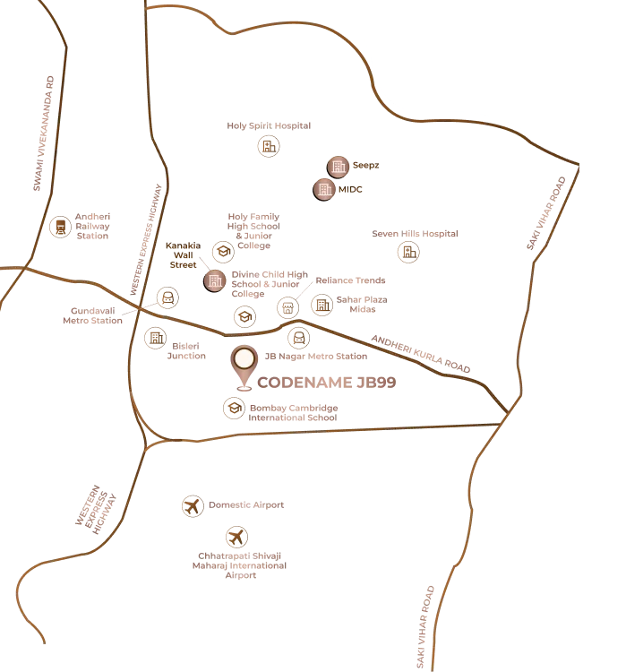 Codename JB99, Behind Gokul Regency, Near Sahar Cargo Estate,V.M Shah Marg, J B Nagar, Andheri East, Mumbai, Maharashtra 400099
